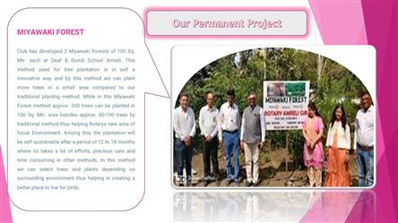 The club has developed two mini forests within the campus of Bera Munga School. While the traditional plantation method allows for only 80 to 100 trees in a given area, the Miyawaki technique makes it possible to plant over 350 trees in the same space. In both of these Miyawaki forests developed by the club, a variety of medicinal, fruit-bearing, and bird-friendly native trees have been planted. This method allows trees to grow naturally within just 12 to 18 months, creating an environment similar to a small jungle. Established under Rotarys "Supporting the Environment" area of focus, this forest not only sustains the environment but also serves as a source of learning and environmental awareness for students.