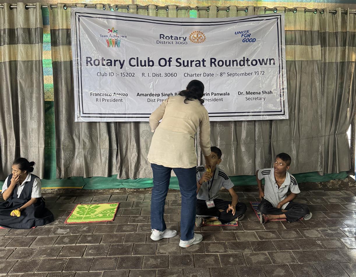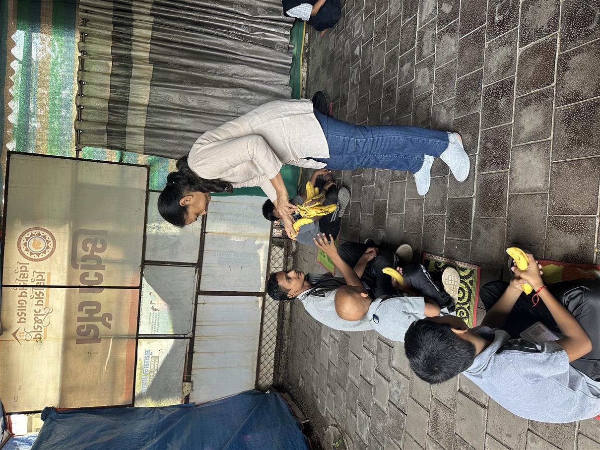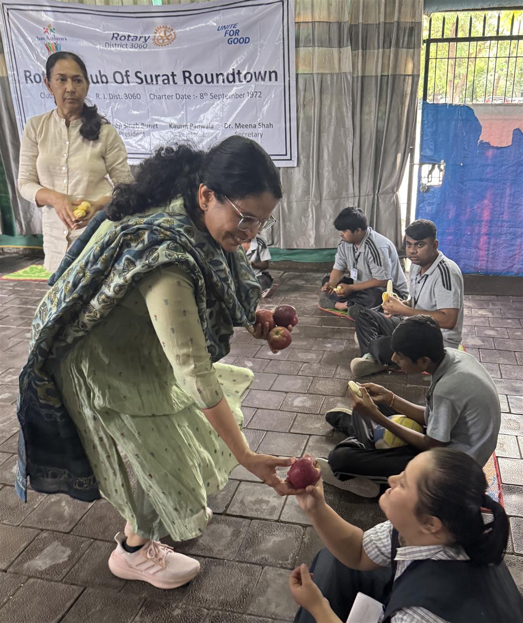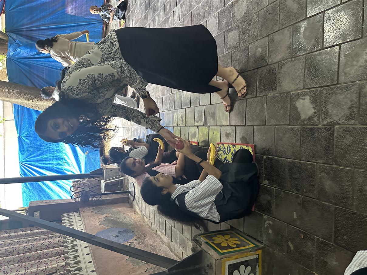 30 special kids of Mamta school were fed with Banana , apples , samosa , kachori and Iddha