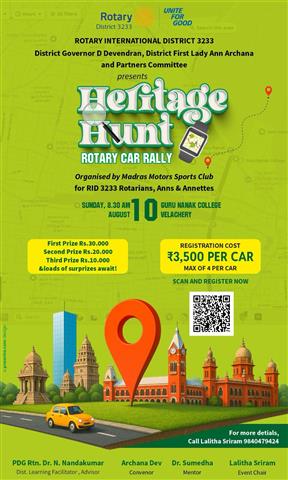 Heritage Hunt Organised by Madras Motor Sports Club, From Gemini Our Rotarians Rtn Janani Ponnaiah, Rtn Hari Priya, and First Lady Mrs.Uma Participated and won the 3rd Prize for Best dressedup catagory.