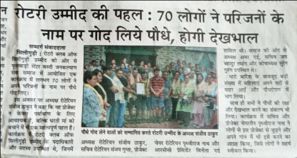 The Rotary Club Siliguri Umeed recently organized a tree plantation drive at Fulbari Center Basti Jan Kalyan Seva Samaj, where around 70 individuals adopted plants in honor of loved ones despite heavy rain. Led by President Sanjeeb Thakur and Secretary Sanjay Gupta, the initiative aims to promote environmental protection. This isnt the clubs first effort, as theyve previously organized mega tree plantation drives, including one in Paini Kumari where 50 saplings were planted. Their Tree Bank initiative encourages community participation in environmental conservation