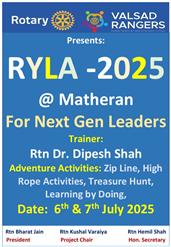Rotary rangers planned RYLA 2025 for college students of Valsad District. 50 students and 4 teachers took part in this along with trainer Rtn Dr. DIpesh Shah