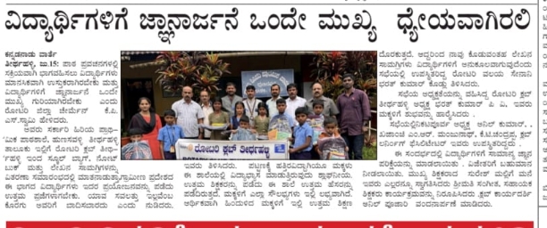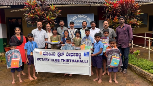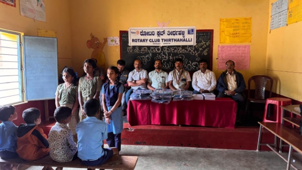 Date; On 14-07-2025, the Rotary Club donated school bags, notebooks and pens to the children of Government Higher Primary School, Hunasavalli, kuruvalli School, Kasaba Hobli.