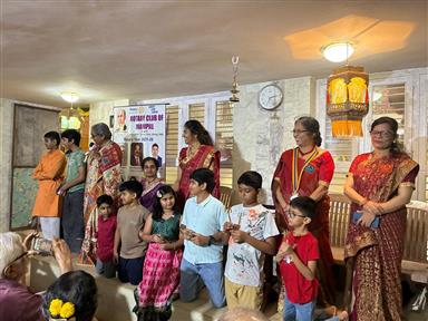 The weekly meeting held on 23rd September 2025 at the residence of Rtn. Dr. Girija was themed Shubh Navarathri and attended by 65 members. The celebrations included a beautiful doll arrangement (Golu), Garbha dance, traditional costumes, festive food, and cultural sharing, creating a joyous atmosphere. President Rtn. Shashikala Rajavarma welcomed the gathering, after which Rtn. Subodh Shetty shared the Thought for the Day and Ann Dr. Veena D presented Rotary Information. Guest speaker Mrs. Radhika Acharya, a renowned writer, spoke about her journey from blogger to author, inspiring parents to encourage children to write. The evening also witnessed PDG Rtn. Dr. Gowri presenting a PHF Pin and Certificate to IPP Rtn. Subhash Bangera, along with heartwarming recitations by the three Johns on Navaratri and related themes. The meeting concluded with music and dance that made the event vibrant, inclusive, and memorable for all ages.