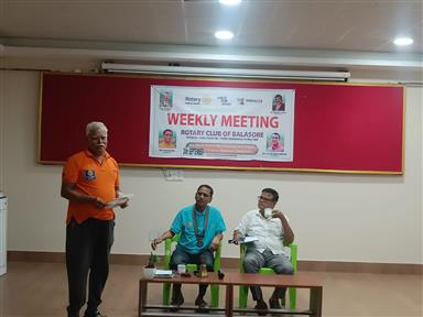 Clubs regular weekly meeting was held at Kaushalya Devi Jain Memorial Conference Hall of Rotay Bhawan. The meeting was presided by Rtn Devasis Das, President with Rtn Bidyut Pradhan, Jt. Secretary on the dais.