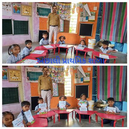 Distribution of Balvatika Books to Achhali Primary School, Achhali. Total 6 Books were distributed to kids