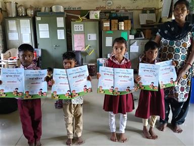 Distribution of Balvatika Books to Kundi Ucha Kalam MP Primary School, Kundi Ucha Kalam MP, Chhotaudepur. Total 4 Books were distributed to kids
