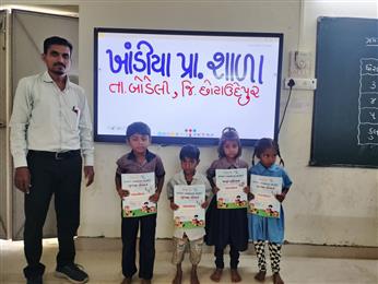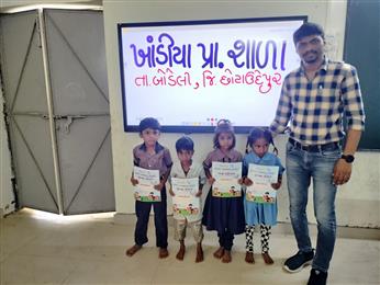 Distribution of Balvatika Books to Khandiya Primary School, Khandiya, Chhotaudepur. Total 6 Books were distributed to kids