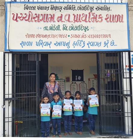 Distribution of Balvatika Books to Pachhisgam Primary School, Pachhisgam, Chhotaudepur. Total 5 Books were distributed to kids