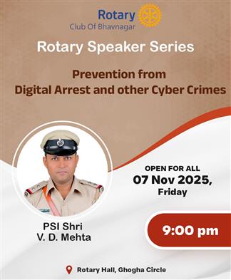 We had PSI Shri. V. D. Mehta, as the guest speaker who gave an informative knowledge about "Prevention from Digital Arrest and other Cyber Crimes.", where in citizens of Bhavnagar were also present in large numbers.