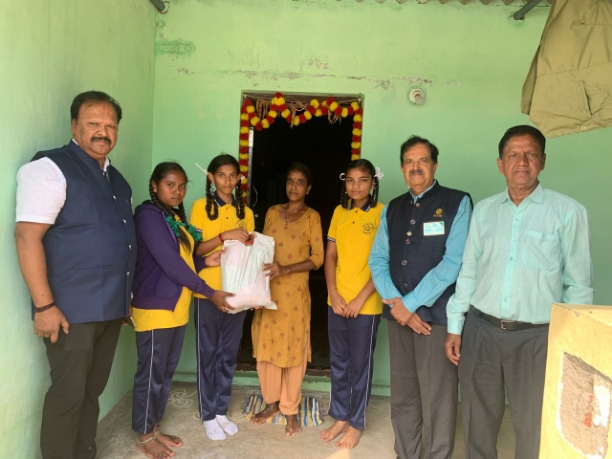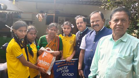 interact club of someswarapura govt high school and RC club of Mysore Elite, have distributed woollen bedsheet and daily needs material to old aged women at someswarapura village on 26/11/2025